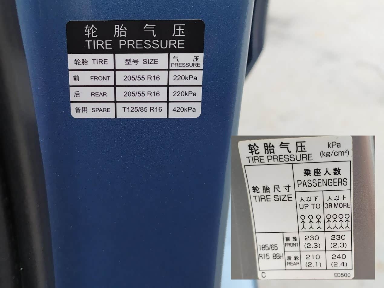 车辆在出厂的时候已经对标准胎压进行了注释,位置一般在车辆的B柱(打开主驾或副驾位置即可查看到),或者在油箱盖内。有些车型只标注了一个胎压,而有些车型标注了空载和满载,甚至不同轮胎尺寸的胎压。