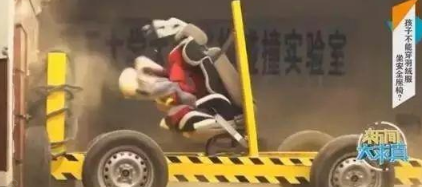 因为羽绒服面料光滑,结构蓬松,当汽车急刹或者发生猛烈的撞击时,孩子会像“金蝉脱壳”一样脱离羽绒服,飞出安全座椅。真的是这样吗?湖南卫视在某节目中用实验证实了这一点。下面图文解说版附上~