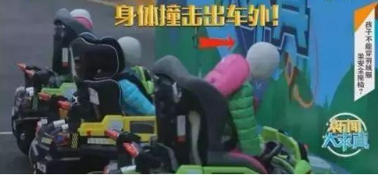 结果,汽车启动,飞快撞击,以每小时20公里的速度撞向墙壁时,三个假人宝宝都不同程度地差点被甩出座位。