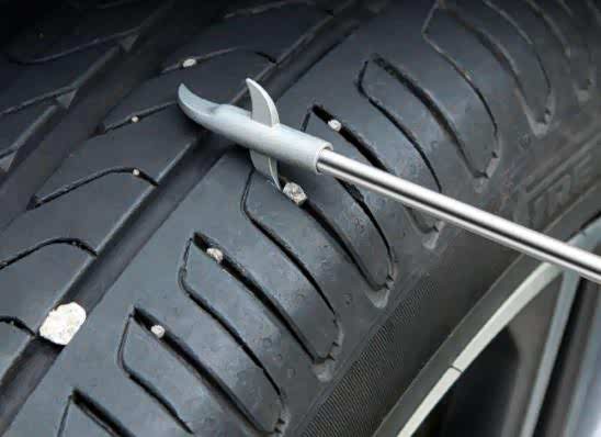 3. 经常清理轮胎纹内夹杂物:要定期检查轮胎是否有扎钉,割伤,气门嘴橡胶老化等现象,发现后及时进行修补和更换,防止亏气行驶。对于嵌入轮胎的细小石子,可以不用理会。较大尺寸的石子,不仅影响轮胎寿命,还会在运转时产生噪音,这种是需要抠掉的。