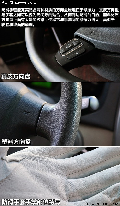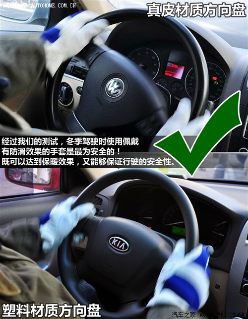 众所周知,方向盘分为真皮材质和塑料材质。冬季用车建议购买带有防滑功能的冬季手套,防滑功能的手套在这两种材质表面均有显著的防滑效果,安全系数高。
