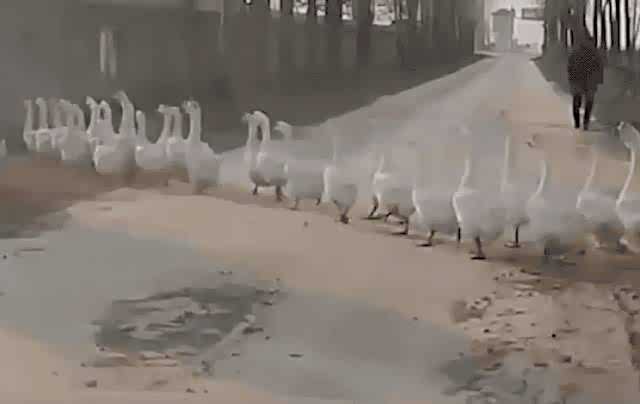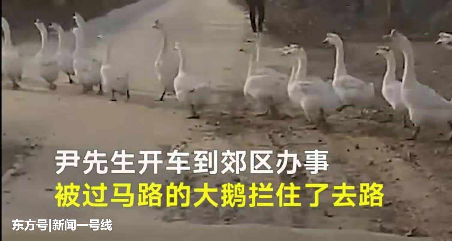据了解,12月5日,尹先生开车到阜阳郊区办事,路过一条小路时被一队过马路的大鹅拦住。
