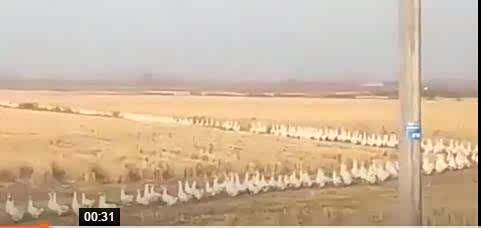 近日,在安徽阜阳,千米长大鹅方阵排队过马路,汽车等待15分钟还未过完。
