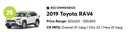 SUV一直都是国内消费者的大爱,空间又大视野又好。但相比轿,SUV的自重较大,油耗自然也就成为了大家比较关心的事。前段时间,美国权威机构《消费者报告》,就给出了2019年最省油SUV榜单。第一二名是日系,第三是雪佛兰!