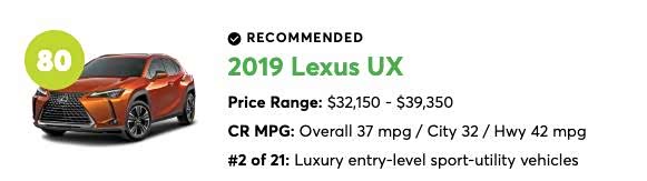第一名雷克萨斯UX