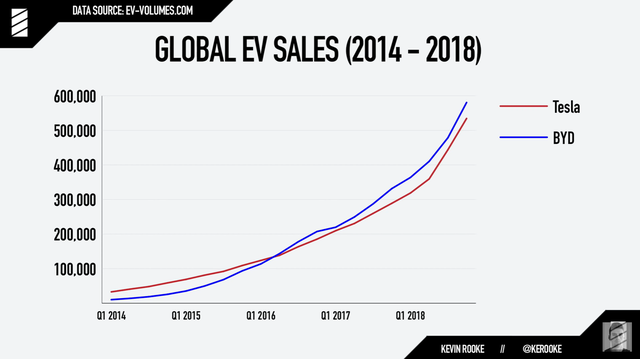 美国数据专家凯文·鲁克(KevinRooke)统计发现,截至2019年10月,特斯拉自成立以来累计售出电动汽车807954辆,比亚迪历史累计销量787150辆。据此计算,特斯拉目前已是全球最大的电动汽车制造商。