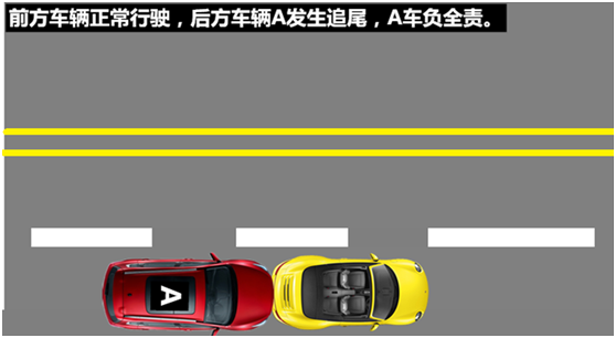 事故情形一:车辆行驶过程中(前车无违规操作),后车开车分神或未与前车保持安全车距,导致的车辆追尾事故,后车(A车)全责。