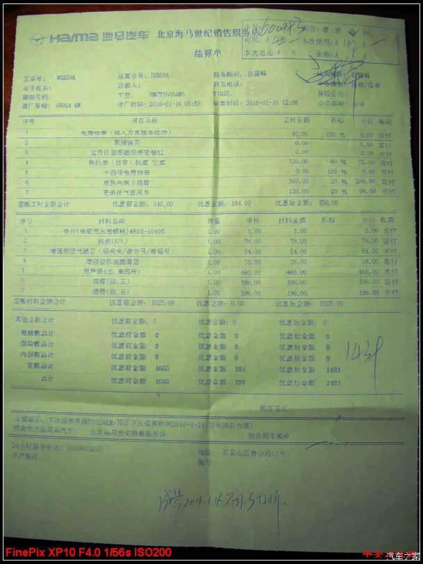 各个车型的4S店都针对车主有相应的优惠活动,我车的4S店是搞会员制,前几年就是维修保养有个返还积分的政策,这几年改了规则,除了返还积分,每年还根据会员级别的不同还赠送一些汽车装饰,我的车自从买了,维修保养都是在4S店做的,保险也都是在4S店上的,所以我在店里的会员级别不低,每年基本都能得到4项赠送的装饰项目。因为去年送装饰给我带来的不满,这次选择了相对容易的几项,清洗节气门、车身封釉,地胶、原车挡泥板。结果还是存在问题,就拿地胶来说,感觉贴合度还不如我原来汽配城装的老款普力马专用地胶,而其安装工人居然把车架号直接封在地胶下面,也没留个口,验车前只好自己拿壁纸刀切了个口,估计用不了多久就会坏!