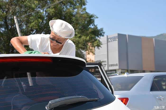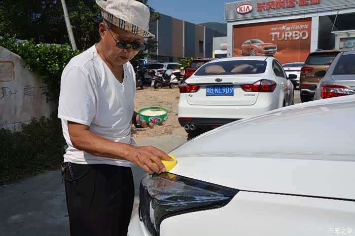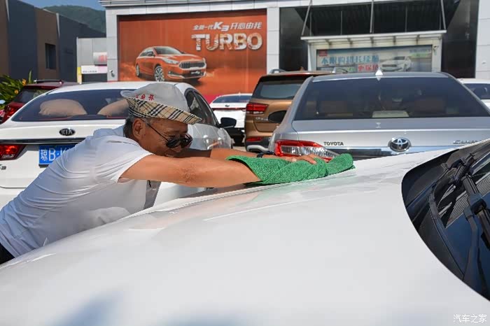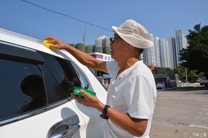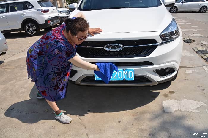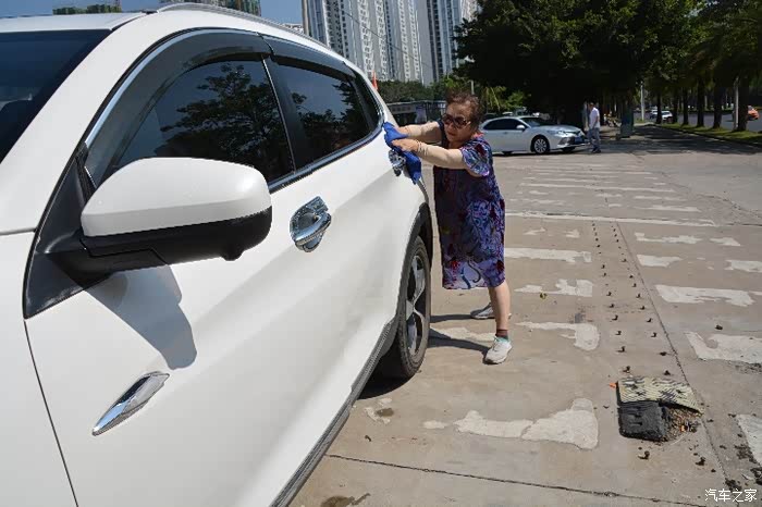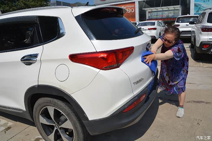 自己动手,虎7卫生,老太太一手一块毛巾,为擦车工具之一,左手专用擦腊的,右手专用擦虎体脏物及水等。