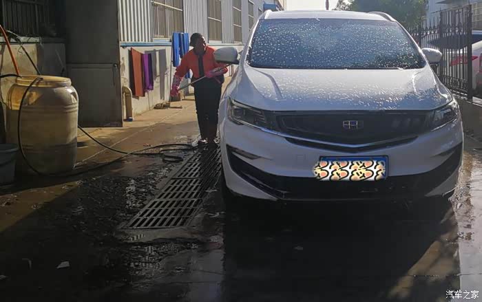 对比起外面洗车,我更喜欢带着嘉际在家洗,还是因为自己洗更干净