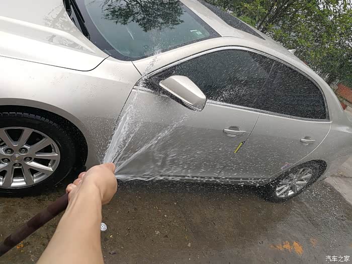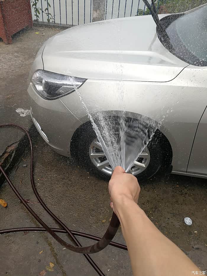 爱车已就位,拿出毛巾,接上水龙头,开始洗车。