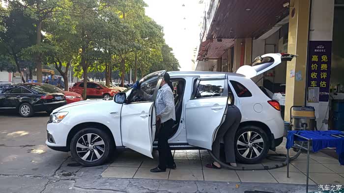经过20分钟的等待,终于把小劲洗好出来了,然后就是内饰清洁,4个人一起上,看来这30元用得“物有所值”