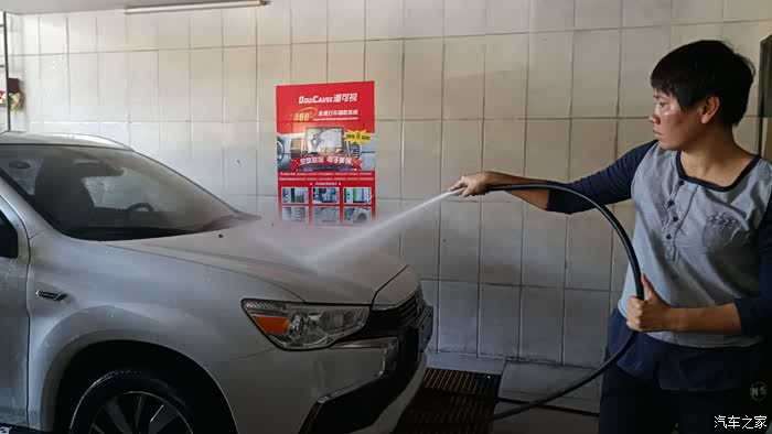 来到美车店,把爱车开进去,先用水把车身上的泥土和灰尘干净