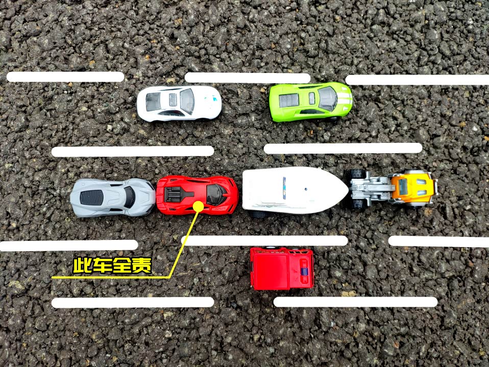 这种追尾常发生在带有坡度的路段。司机在等红绿灯时,忘记拉手刹,导致车辆出现向后溜车的现象。与后车相撞后,全责由前车负责。不过如果后车能够拿出前车溜车的证据,交警可以判定是前车责任。如果没有证据,交警很容易判定后车追尾负全责。