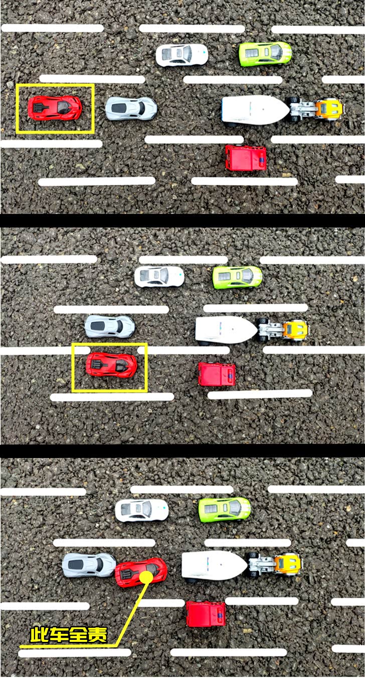 车辆在自己车道行驶时,突然有车辆想要侧并线。这个操作非常常见,但是要保证在安全的车距范围内进行。追尾的前车涉及到压线行驶等违章行为。所以在发生追尾事故时,前车负全责。
