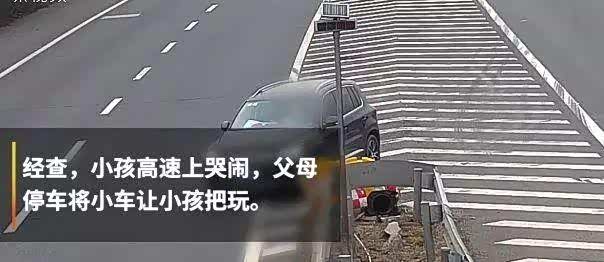 高速车辆车速较快,随意停车,后面车辆无法及时刹车,容易造成交通事故,同时,让小孩子把玩方向盘,是对大人和孩子的生命安全极不负责的行为,这位家长可长点心吧!