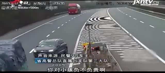 驾车行驶在高速上时,不得在高速路上随意停车,容易造成交通事故。12月26日,在福银高速黎川段,一家长因孩子哭闹,把车停在高速上,让孩子把玩方向盘。