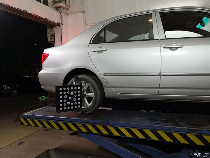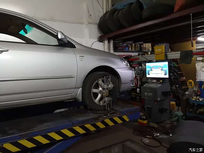 配件换好后做了四轮定位,花冠的后轮不用动,只是动两个前轮就好了。