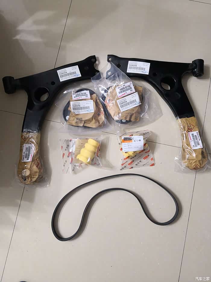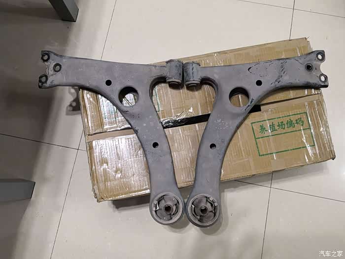 两条下摆臂,这宝贝用箱子装好收起来,万一高仿件不耐用还可以去压个胶套继续使用,我换整条摆臂的原因是问了好几家修理厂都不肯压胶套,而且胶套没有原装件,高仿件匹配不好一来一回拆装更麻烦。