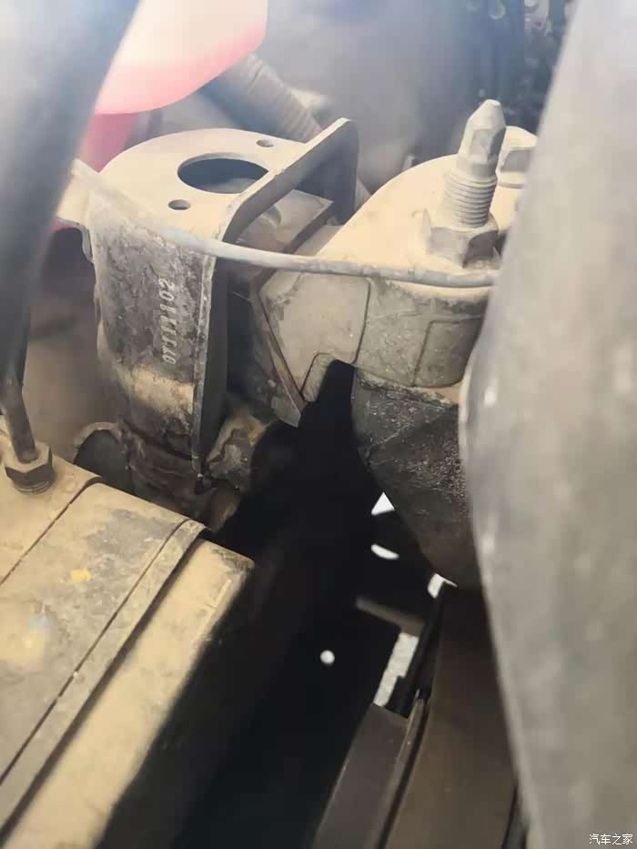 已经塌到底的机脚胶,这个是液压的,受力比较多,达到了更换标准。