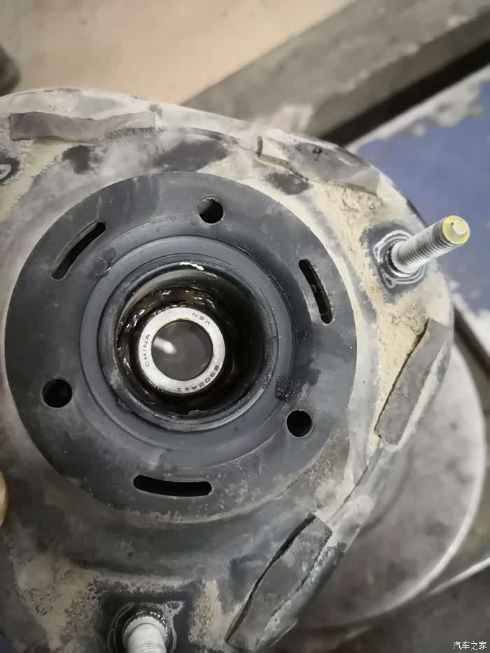 拆下来的顶胶,上面一堆氧化材质,轴承转动有异响,不顺滑,确实是要换了
