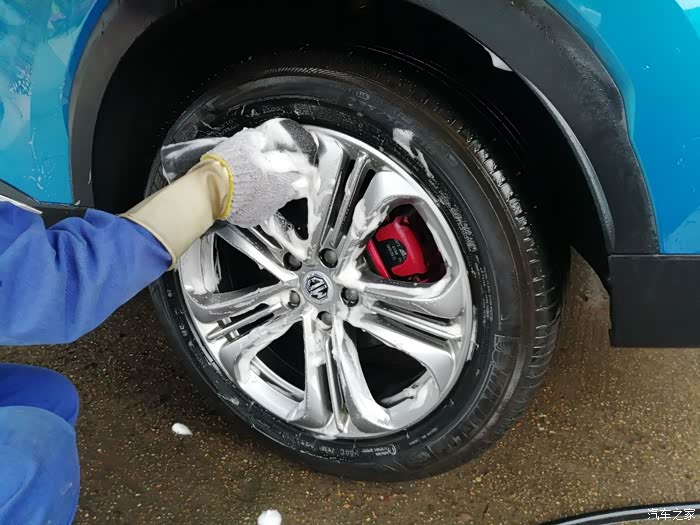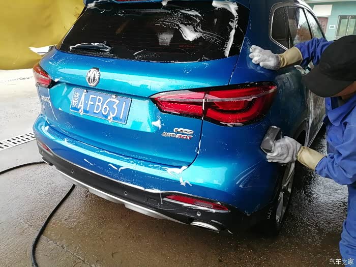 冲干净后,师傅就给我的爱车上肥皂浴了,嘻嘻,一定要洗的干干净净,要不然回去会被老婆骂的。