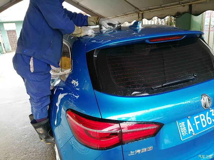 不落一处,最难洗的车顶,师傅直接爬上去洗了