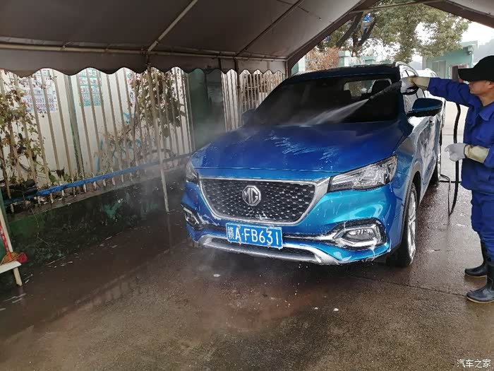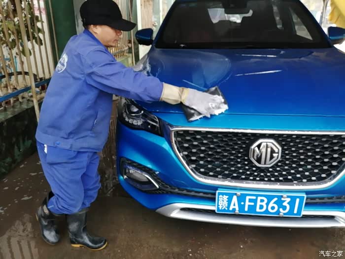 先开到旁边的洗车棚,让师傅冲个水,好像是需要洗了,确认有点脏了