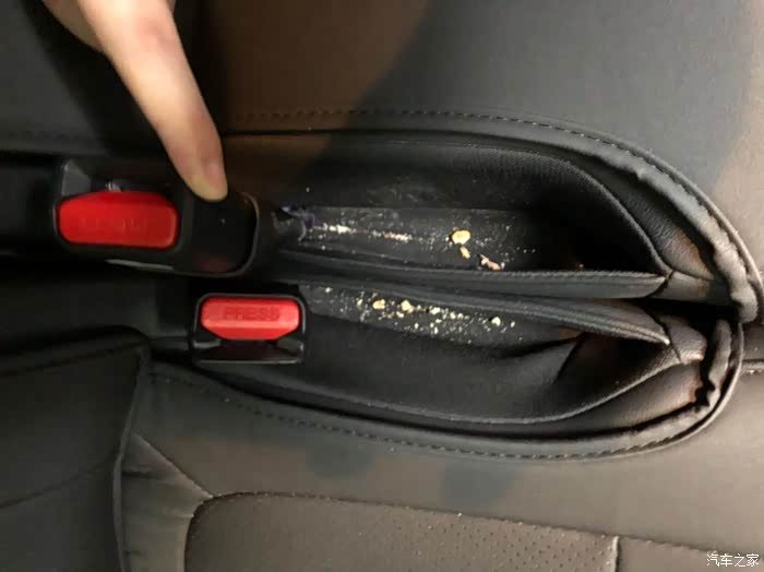 后排座椅的安全锁扣槽里面,应该都是我家小宝宝在后面吃零食落进去的。