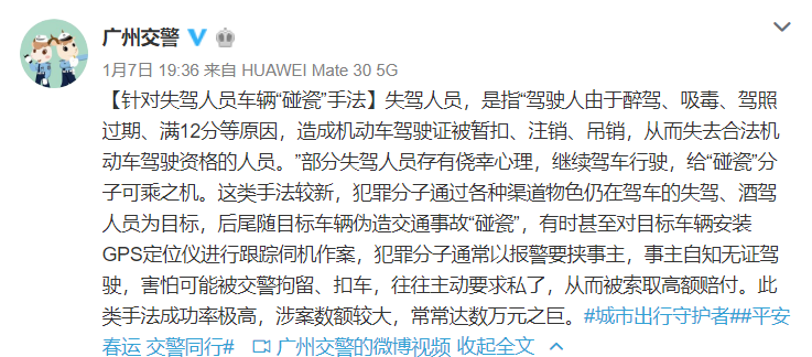 近日,广州交警官方微博通报了一种新的“碰瓷”手法,犯罪分子甚至用GPS定位目标车主来“打猎”,这是怎么回事呢?