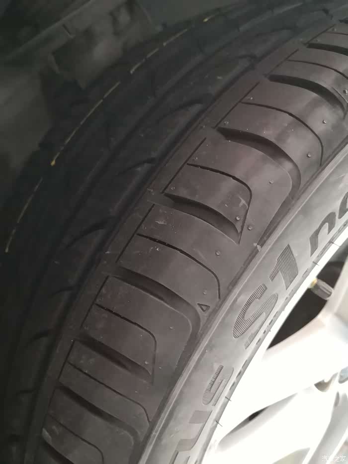 左右花纹有点不太对称,小工说这种不对称的,高速噪音会稍微大一点,管他呢,试试看。