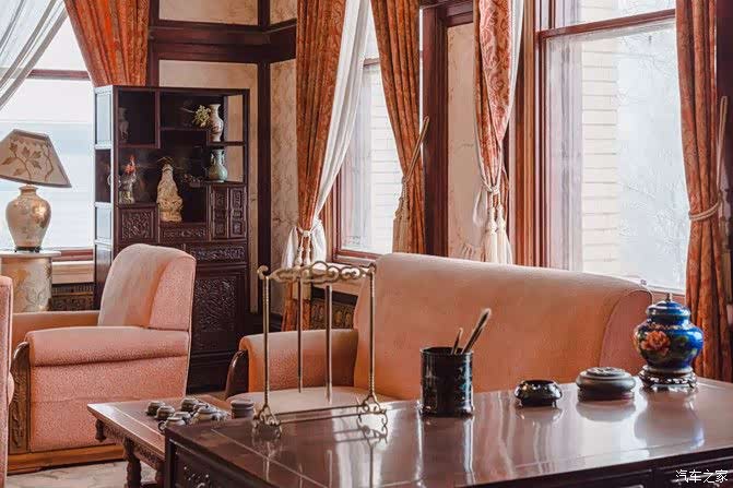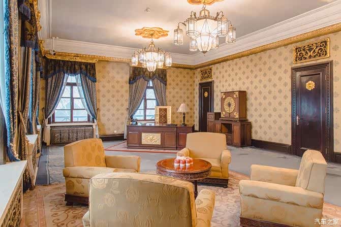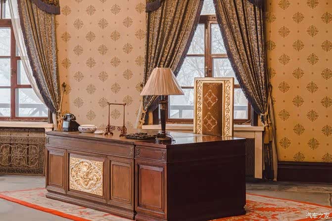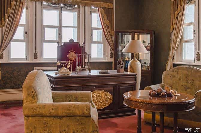 主建筑是同德殿,相当于乾清宫吧。溥仪起居和接见都是在这里,大殿里面不大,还有二层的回廊。吊顶还用了宫灯的样式,大殿尽头就是觐见大厅。这里是溥仪正式接见外宾的地方。相当于铁王座吧,内饰都是很风的。当然龙椅换成了伪满皇室的兰花徽章。缉熙楼一座很西式的洋楼,比同德殿更生活化。据说是家眷啊后宫啊起居的地方。装修风格看上去都很暖,博物馆很有心,每张桌子上都放着不同款式的茶具。