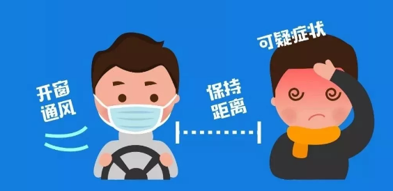 可疑症状者(可疑症状包括发热、咳嗽、咽痛、胸闷、呼吸困难、乏力、恶心呕吐、腹泻、结膜炎、肌肉酸痛等)搭乘私家车时应佩戴医用外科口罩,尽量与同车人员保持距离,不要开启空调内循环,适度开窗通风。