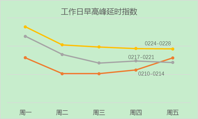 工作日尾号限行暂未恢复,工作日早晚高峰交通压力持续回升,早高峰交通压力较大,周一最为突出。
