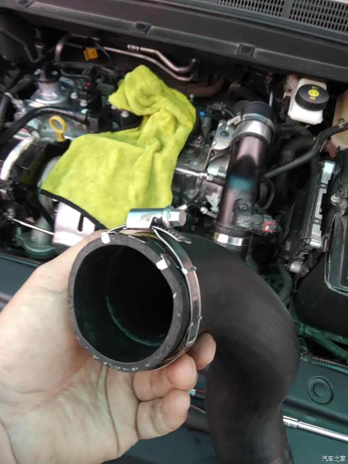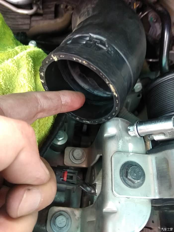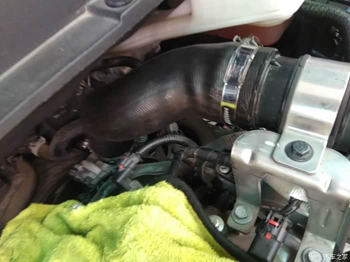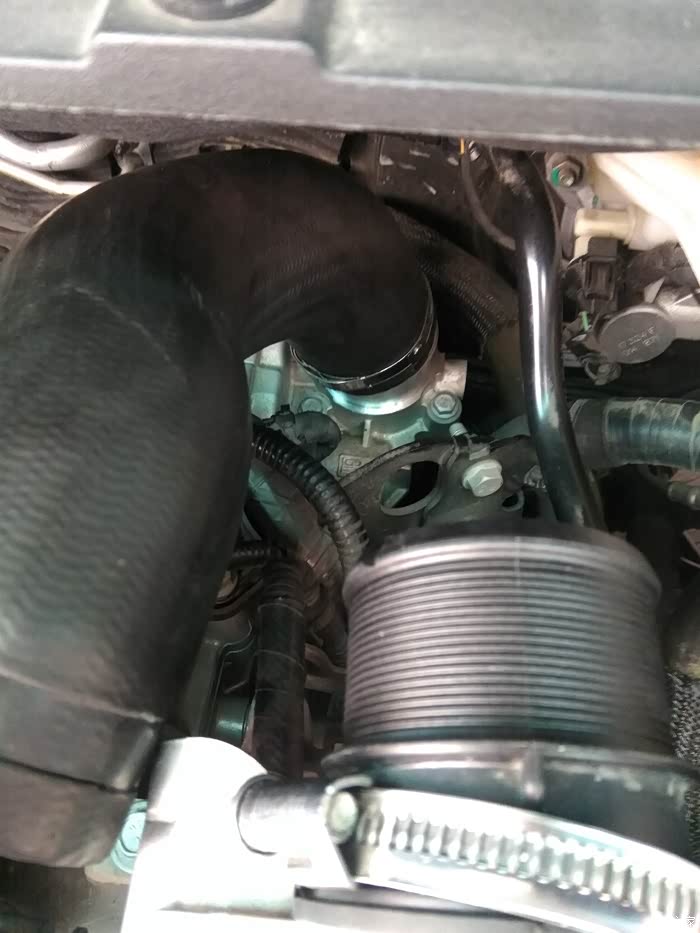 节气门上方连接管两个卡箍,上面用8mm套筒,下面用7mm套筒拆松了,拔掉管子就是了(注意本人改过下面的卡箍螺丝位子,因为原厂位子角度设计的刁酸刻薄,就是不想你自己动手很顺利的拆卸,让你花钱消费去)