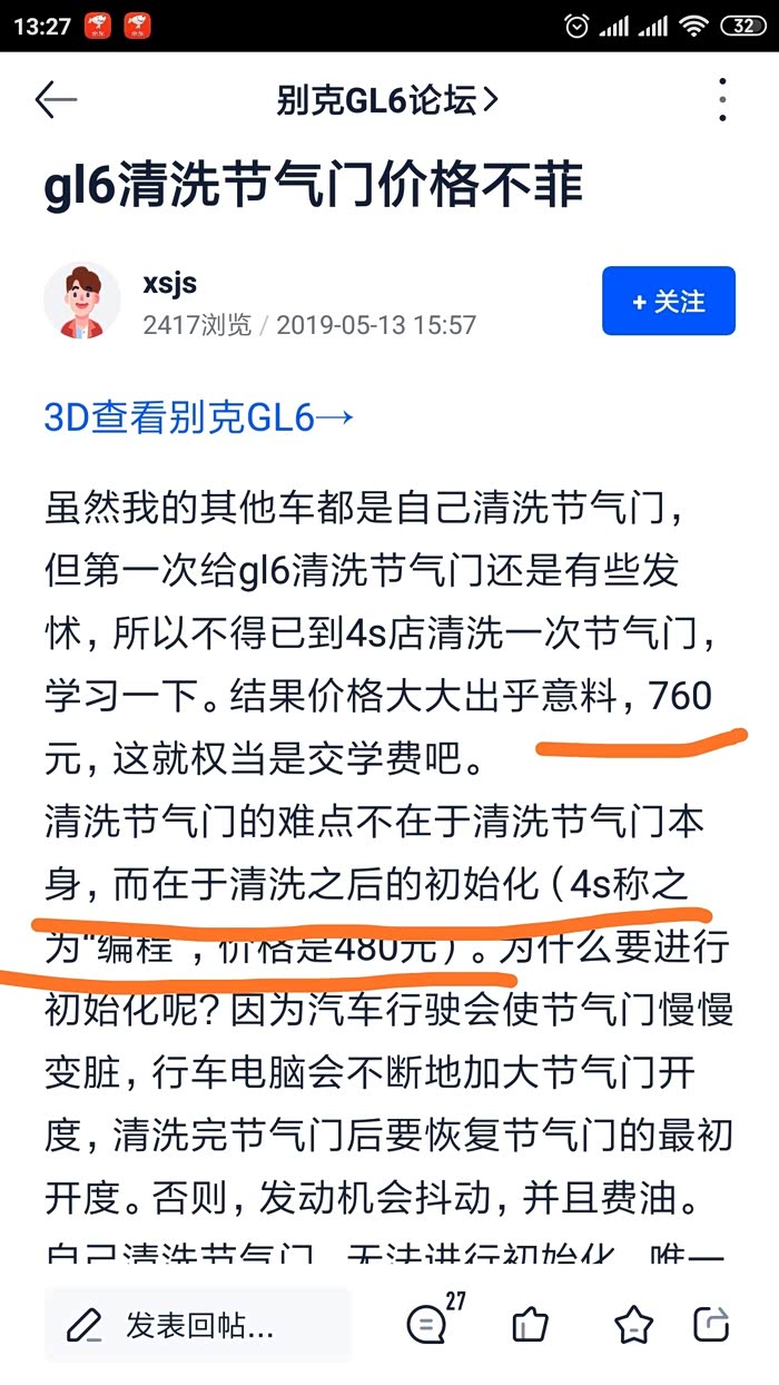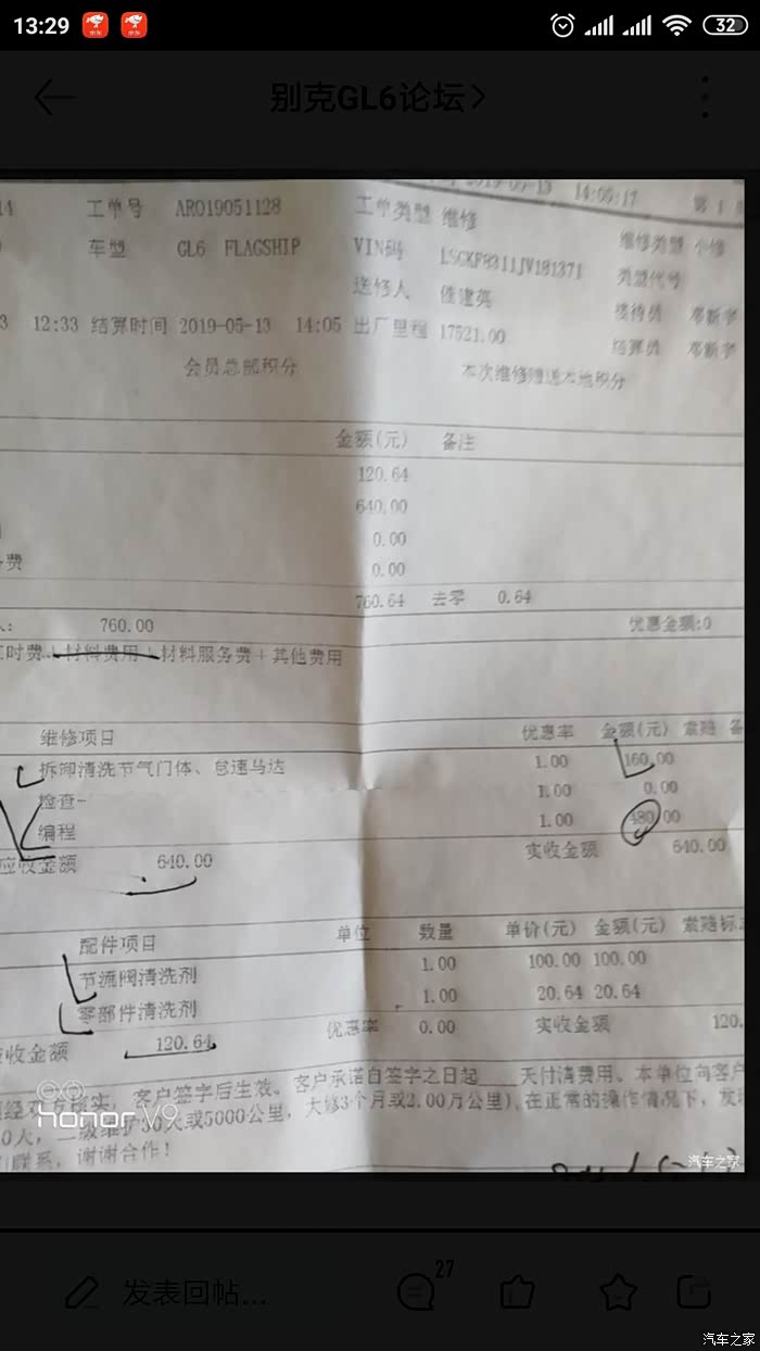 下面来看看四儿子清洗节气门的费用多少借用两张论坛车友作业图片