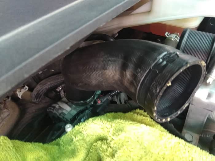 松了上下卡箍,多松一点余量,先拔掉上面接口,再拔下面接口,大胆的拔(管子橡胶软的,捏捏扭扭转转使劲拔)