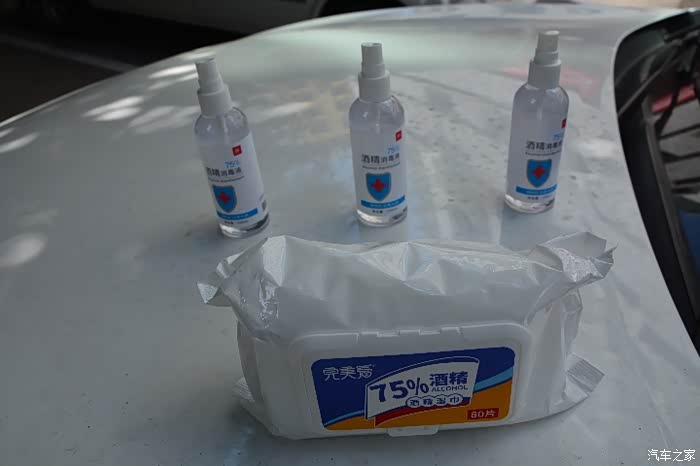 今天特别給瑞虎7准备了,消毒的75度酒精三小瓶和消毒纸巾一合。