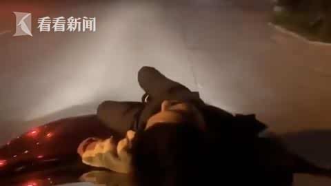 3月3日凌晨,在浙江省台州市温岭新河蔡洋村蔡洋南路,一辆正在行驶中的小轿车引擎盖上躺着一名男子,十分危险。有群众拍下视频进行举报。