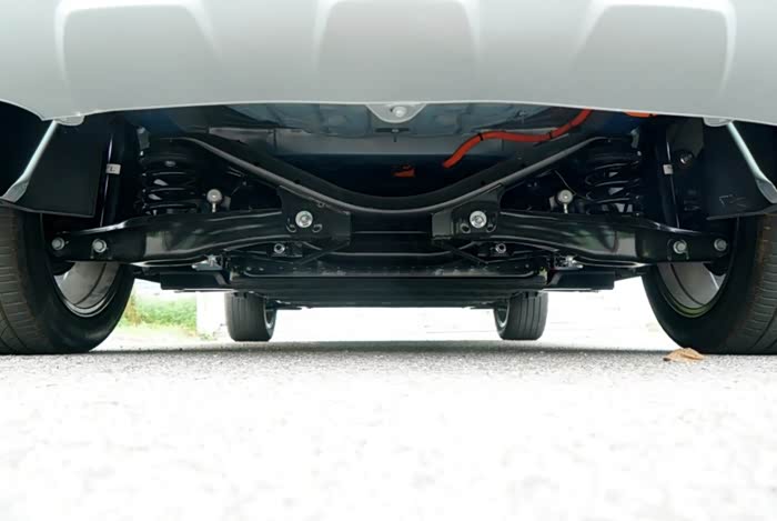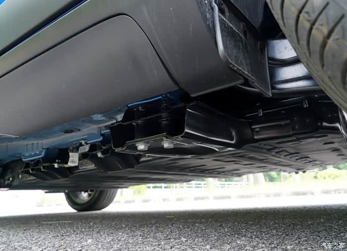 其次就是电池包的安放,并没有像很多车型那样直接堆到了后备箱里面占据了很大的空间。而是设计在了底盘,平铺之后加了一层护板,让车子的重心下坠,这样不仅能够增加整车的稳定性,而且也节省了很大的空间。值得一提的是,离地间距也不错,这样能够最大化的保障了通过性,而且在发生危险的时候,也能保障电池包的安全,感觉设计的挺不错。