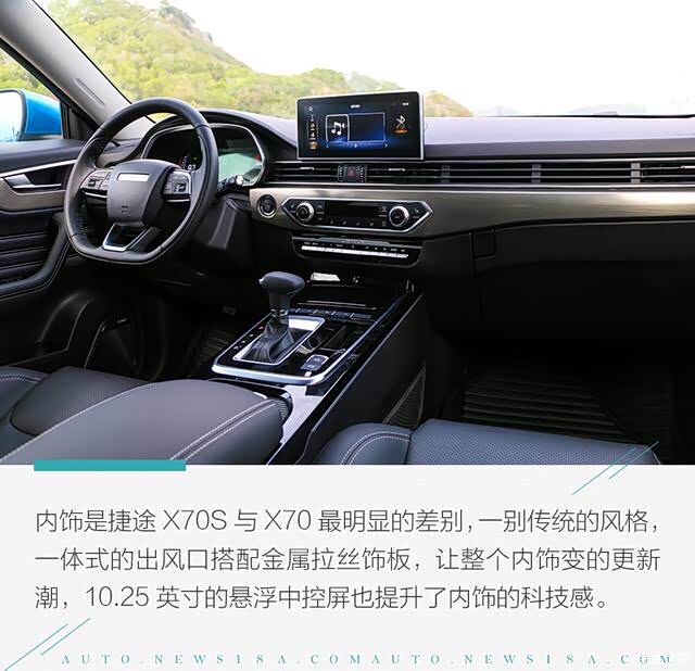 捷途X70S的全新内饰让人眼前一亮,而且细节做的也很到位,整体质感提升很明显。另外,X70S的配置也相当唬人,大部分以前顶配才有的配置下放到了次低配的车型,让消费者可以以更低的价格享受到更舒适的出行乐趣。(PS:手机APP控制也下放到了所有的车型,只是试驾会中没有提供体验)