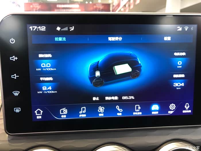 超大9英寸显示屏,新能源选项能看到车内能量回收及能耗。