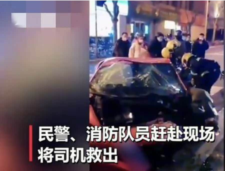 巧在事故发生地正是静安闸北消防支队门口,消防人员见状,立即使用破拆设备撬开车门,才将司机救出送往医院救治。