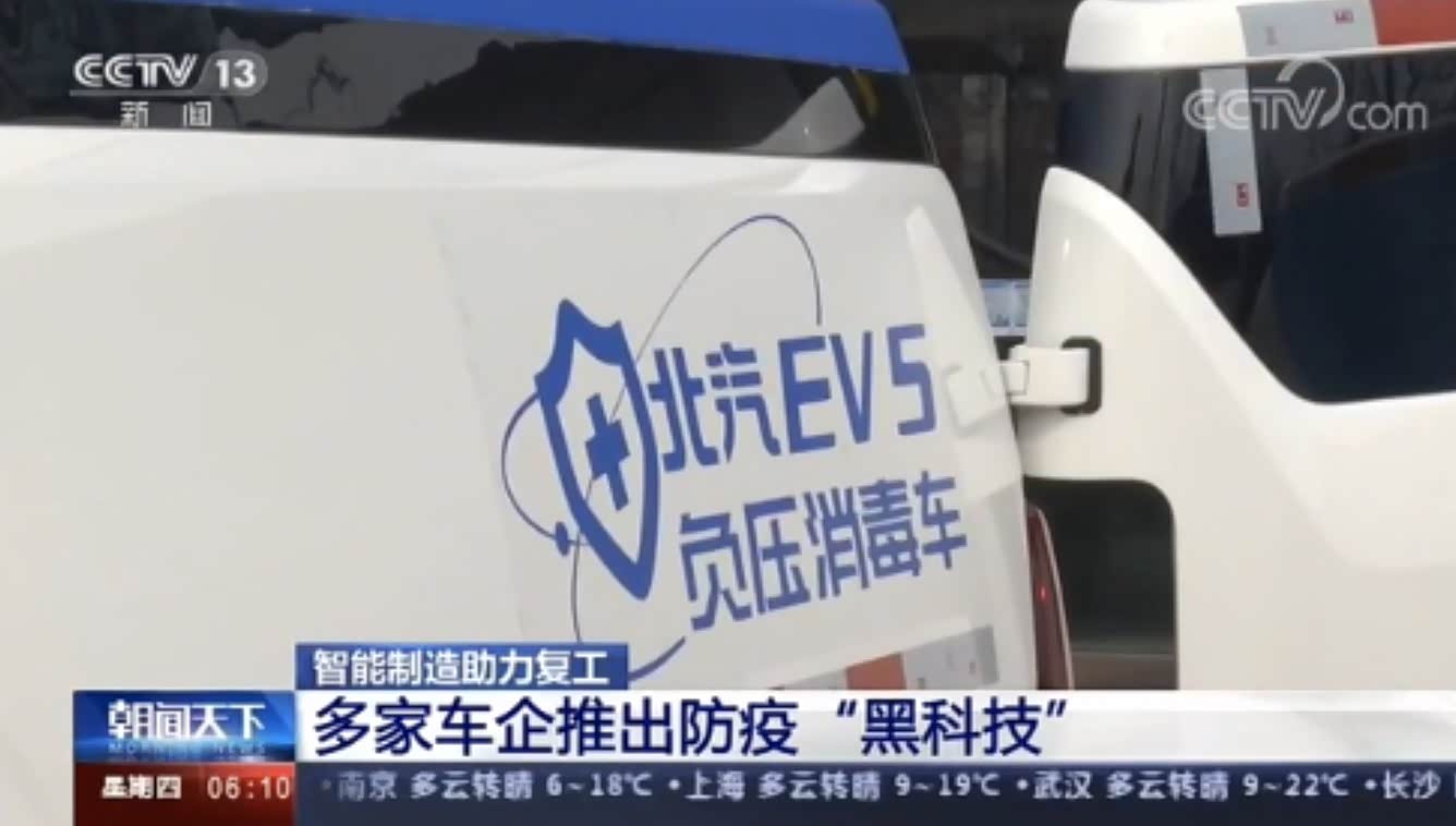 在湖北武汉的街头,这辆无人驾驶汽车,通过5G技术、云端远程控制的前沿科技,同时加装了16升大容量自动消毒喷雾器,可实现道路上全程无人驾驶的消毒作业。而产自河北黄骅的紫外线消毒车、疫苗冷藏车、负压消毒车、医疗废物转运车,都是在新能源汽车的底盘上,应用多项前沿科技进行改造的。