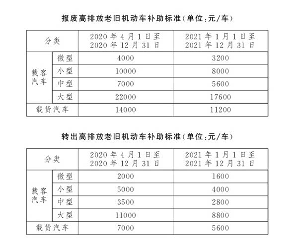 此外,对2020年4月1日至2021年12月31日期间报废或转出本市的高排放老旧机动车,车主申请政府补助和企业奖励的截止日期为2022年3月31日。