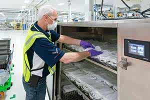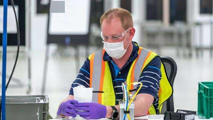 通用生产的首只口罩于3月27日下线。截至3月30日,该工厂一共生产了2000多只测试口罩。通用汽车表示,如果一切按计划进行,那么每天的目标是生产5万只口罩。在下周向一线员工发放首批2万只口罩,随后每月满负荷生产约150万只口罩。