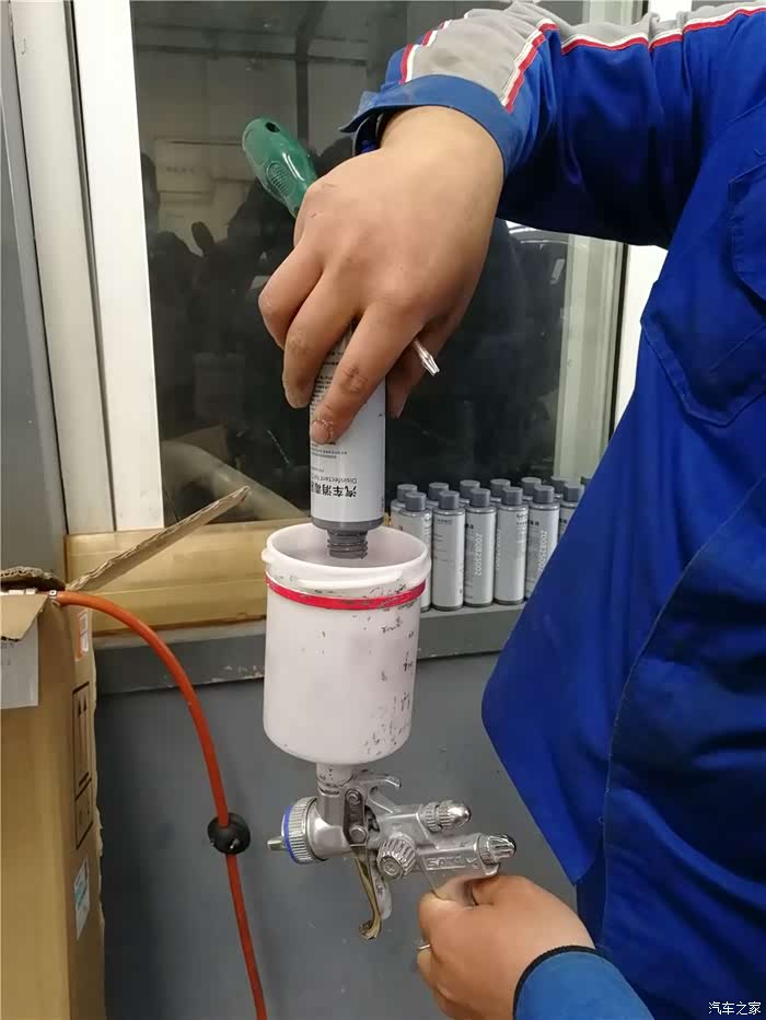 之后将车开到车间外,说是一会废气太多,污染严重。。。吊瓶已经准备好,正在拔进气管子