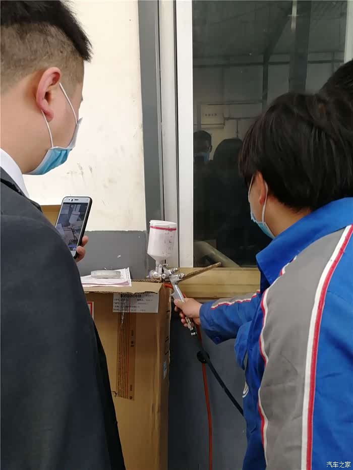 等待期间又参观了一下旁边车辆的消毒过程,还有位售后小伙在直播呢
