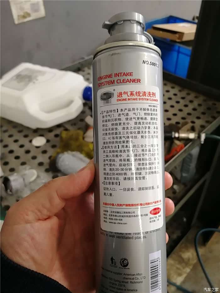 油污清洁剂。这个就是师傅清洗节气门使用的喷剂。车友们用过吗?不是说有专门的节气门清洗剂吗?不过,看着师傅麻利的动作,我想很多在这里的车主也都如此操作吧,4S店应该不会作假。