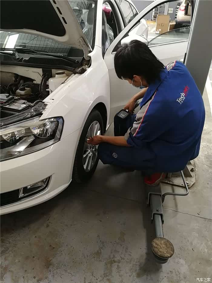 回到车间,检查胎压。